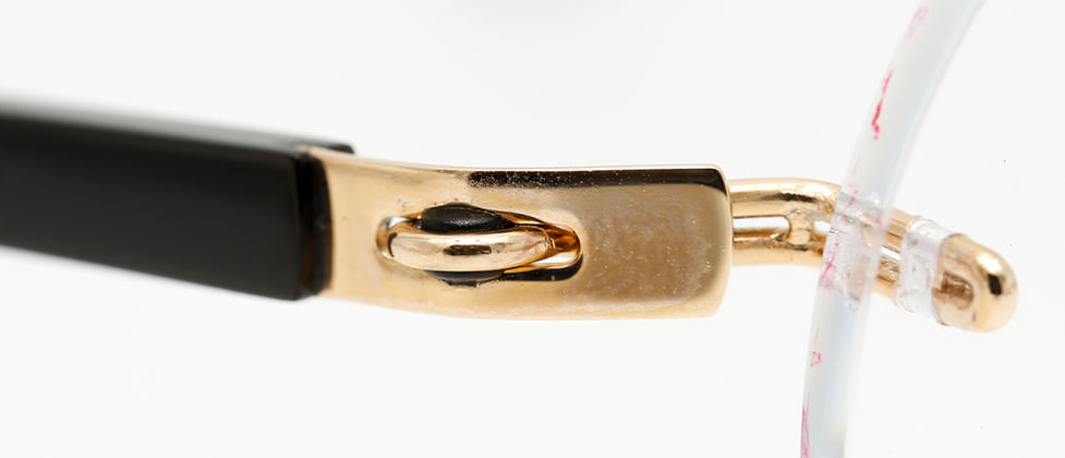 กรอบแว่นสุดคลาสิคแห่งยุคแบบไร้กรอบ ทำจากทองคำชมพู 18 กะรัต ผสมผสานกับเขาสัตว์แท้จากธรรมชาติ และแป้นจมูกทองคำชมพู เหมาะสำหรับผู้ที่ต้องการเสริมบุคลิก ให้ดูภูมิฐาน สง่างาม